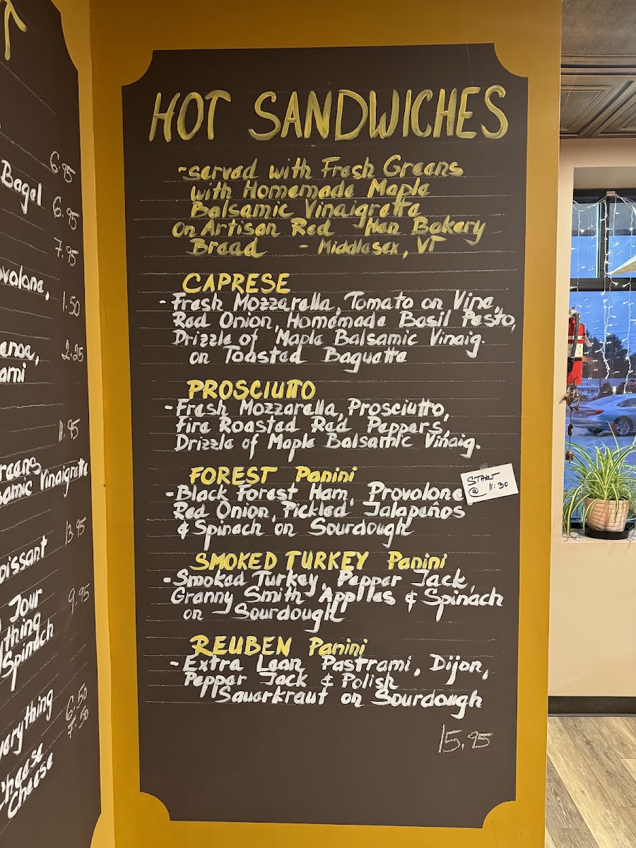 Beyond sandwiches, diners can savor the Quiche Du Jour or indulge in a homemade Hummus Du Jour on a toasted NY Everything Bagel, perfect for those seeking lighter fare. The bistro's beverages are equally enticing, featuring a range of warm drinks like Turmeric Latte and Hot Apple Cider to enhance your cozy visit.